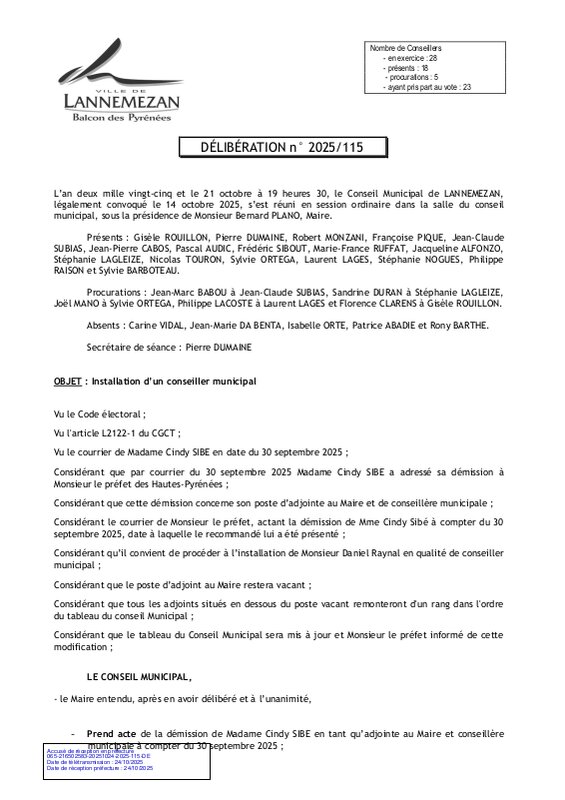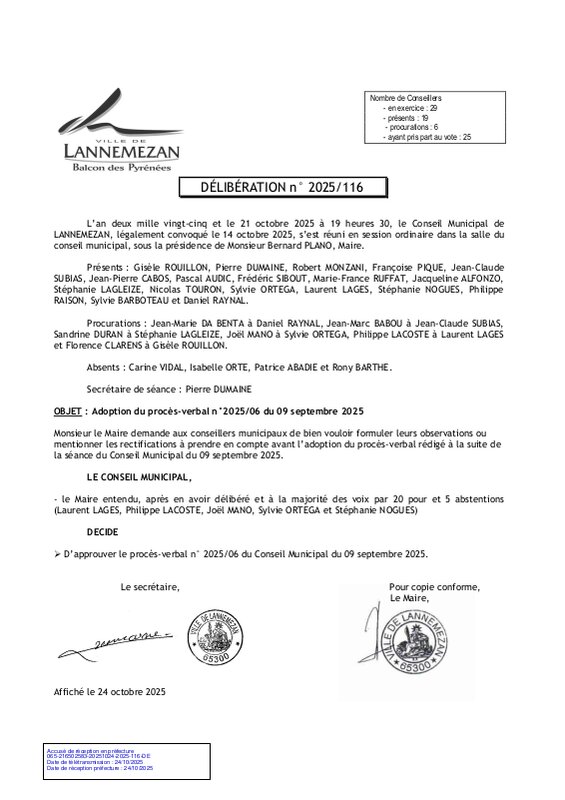 116 Adoption Du ProcèS Verbal N.2025 06 Du 09 Septembre 2025