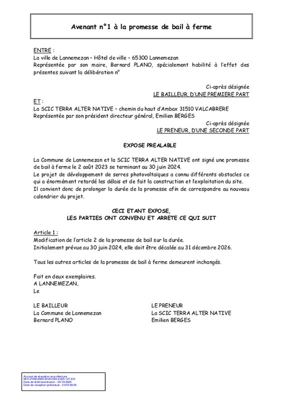 5 2 Signature De L’Avenant N.1 À La Promesse De Bail À Ferme Avec La Scic Terra Alter Native