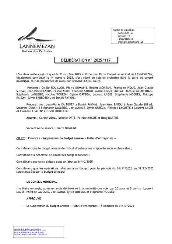 117 Finances Suppression Du Budget Annexe HôTel D'Entreprises