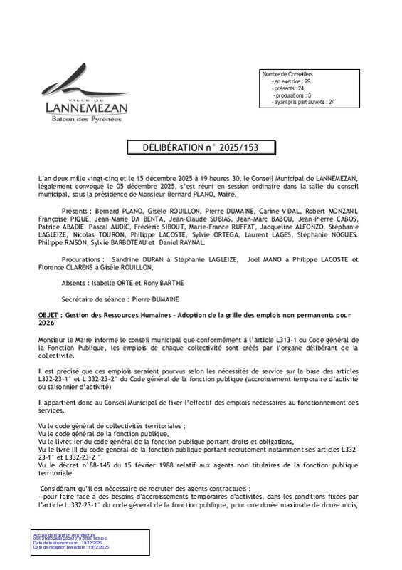 153 Grh Adoption De La Grille Des Emplois Non Permanents Pour 2026