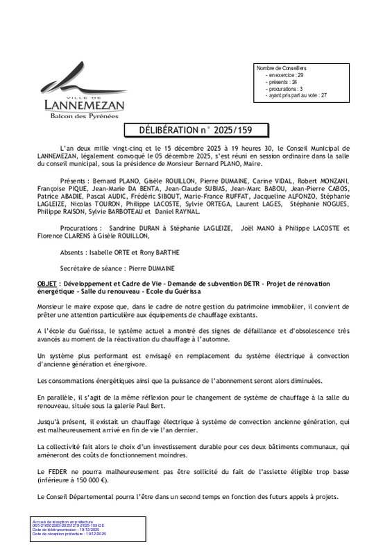 159 Dev Demande De Subvention Detr Projet De RéNovation ÉNergéTique Salle Du Renouveau Ecole Du GuéRissa