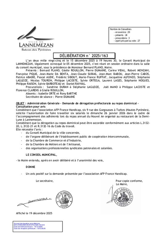 163 Administration GéNéRale Demande De DéRogation PréFectorale Au Repos Dominical Consultation Pour Avis